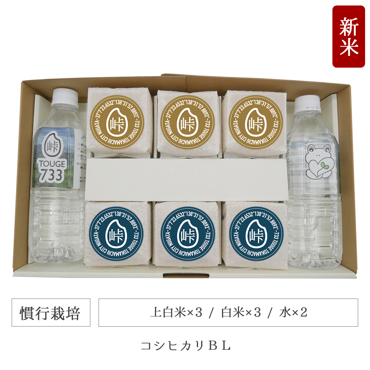 令和7年 慣行栽培 キューブ米6個水2本セット コシヒカリBL 新潟県産|TOUGE733